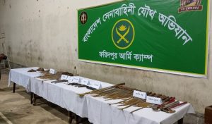 কানাইপু‌রে যৌথ বাহিনীর অভিযানে পুকুর থেকে আগ্নেয়াস্ত্রসহ বিপুল প‌রিমাণ দেশীয় অস্ত্র উদ্ধার