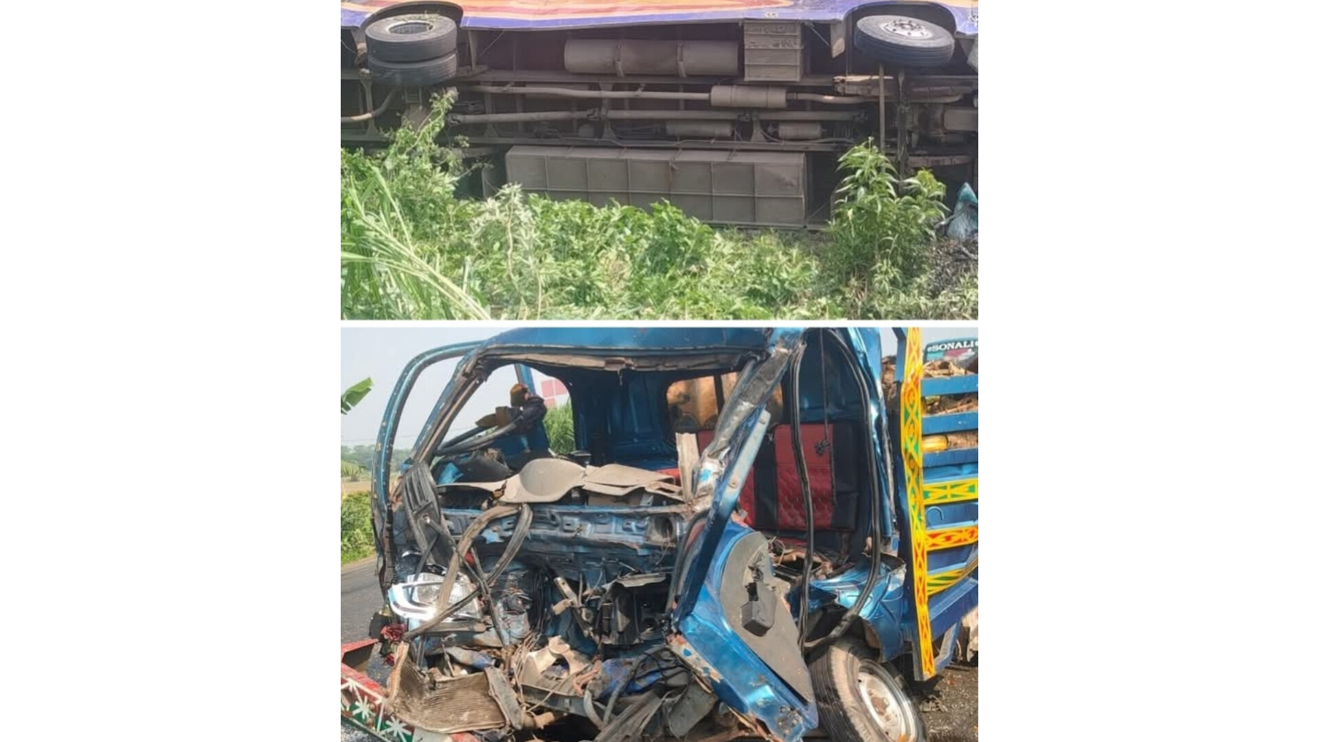 ফরিদপুরের ভাঙ্গা উপজেলায় যাত্রীবাহী বাস ও পিকআপ ভ্যানের মুখোমুখি সংঘর্ষে দুই ব্যক্তি নিহত ও আরও অন্তত ২৫ জন যাত্রী।