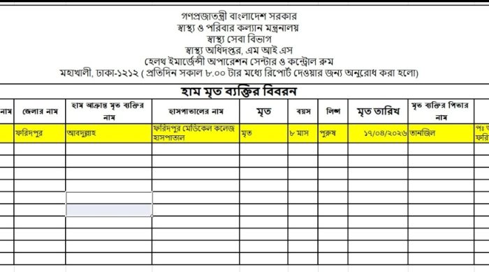 ফরিদপুরে হামে আরও এক শিশুর মৃত্যু